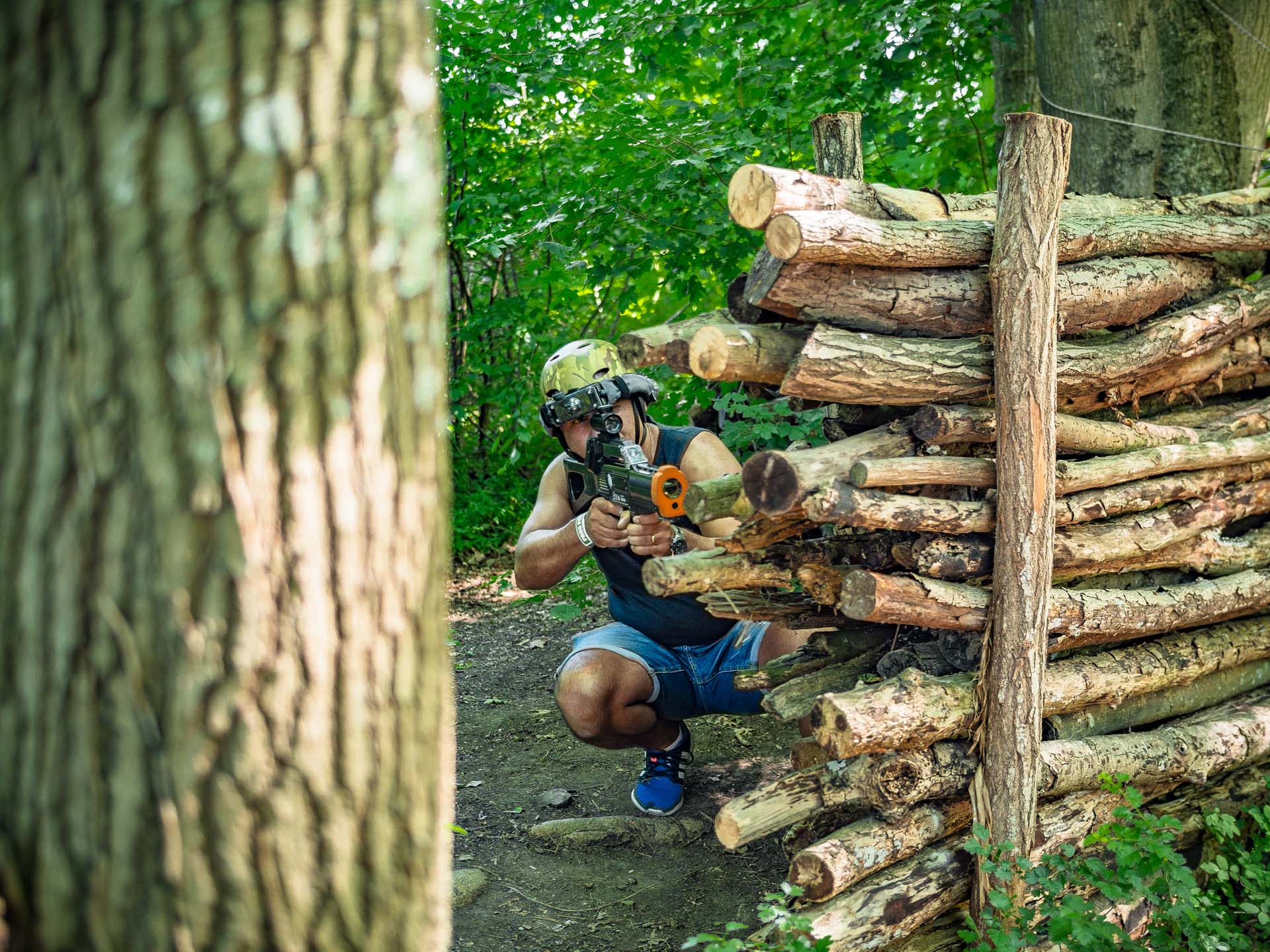 Mettez votre tenue de camouflage et rendez-vous à Jumping Forest pour une partie de laser-tag comme vous n’en n’avez jamais vécu. Cachez-vous derrière les arbres et les différents obstacles en bois pour éviter les tirs adverses. Veillez à ce que vos camarades vous couvrent lorsque vous vous mettez à découvert. Vous allez courir !